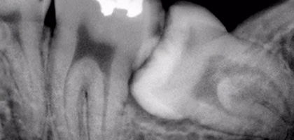 3. 염증으로 인해 사랑니 주위의 골이 흡수되어 사랑니 옆의 어금니의 치조골도 함께 흡수 됩니다.