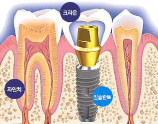 치아가 상실된 경우 인공치아를 식립하는 것으로 상실된 치아를 대체 할 수 있는 가장 좋은 방법입니다. 브릿지의 경우처럼 양 옆 치아를 삭제하지 않아도 되며, 틀니처럼 끼웠다 뺐다 하는 번거로움 또한 없습니다.