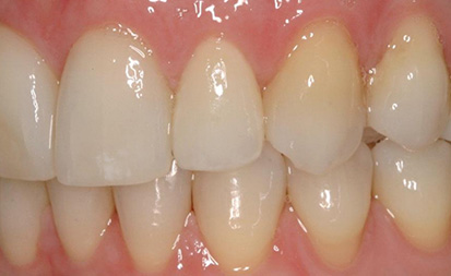 1. 앞니에 오래된 보철물로 잇몸이 변색되었거나 잇몸 모양이 변한 경우